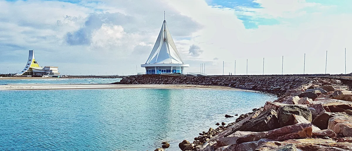 Stadt­er­kun­dung Asch­ga­bad mit sei­ner futu­ris­ti­schen und extra­va­gan­ten Archi­tek­tur.