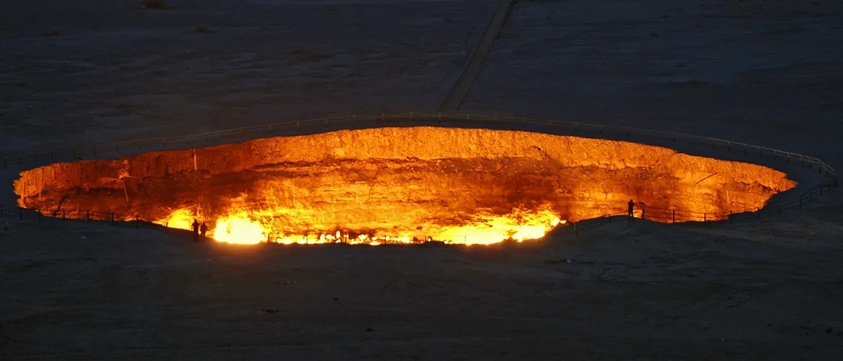 Einen wei­te­ren Höhe­punkt die­ser an außer­ge­wöhn­li­chen Orten rei­chen Rei­se bil­det der Besuch des Gas­kra­ters von Dar­wa­za. In die­ser „Höl­len­pfor­te“ strömt seit mehr als 50 Jah­ren aus einem ehe­ma­li­gen Bohr­loch Erd­gas aus dem Boden und nährt hun­der­te Flam­men. Wir wer­den die­ses spek­ta­ku­lä­re Schau­spiel nachts genießen.